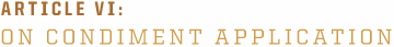 As the application of condiments is solely up to the person eating, this Article has no bearing on the host of the tailgate until he crosses the line separating parking lot chef and gourmand.