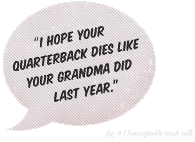 Talking trash, or "smack," as some call it, is a time-honored tradition in sports that also carries over to the tailgating arena. It is especially prevalent in tailgate parties that possess fans of both teams (see, Beyond the Tailgate). And while fun, it should also be practiced responsibly. There are several basic guidelines that should be followed in any trash talking session: